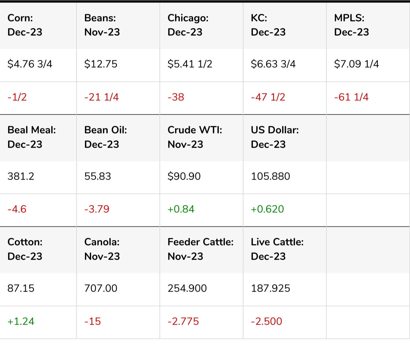 With Friday's losses, corn is only down -1 1/2 cents for the month of September. However, it's not the same story for beans and wheat. For the month of September, beans lost over -90 cents while Chicago wheat lost over -60 cents.