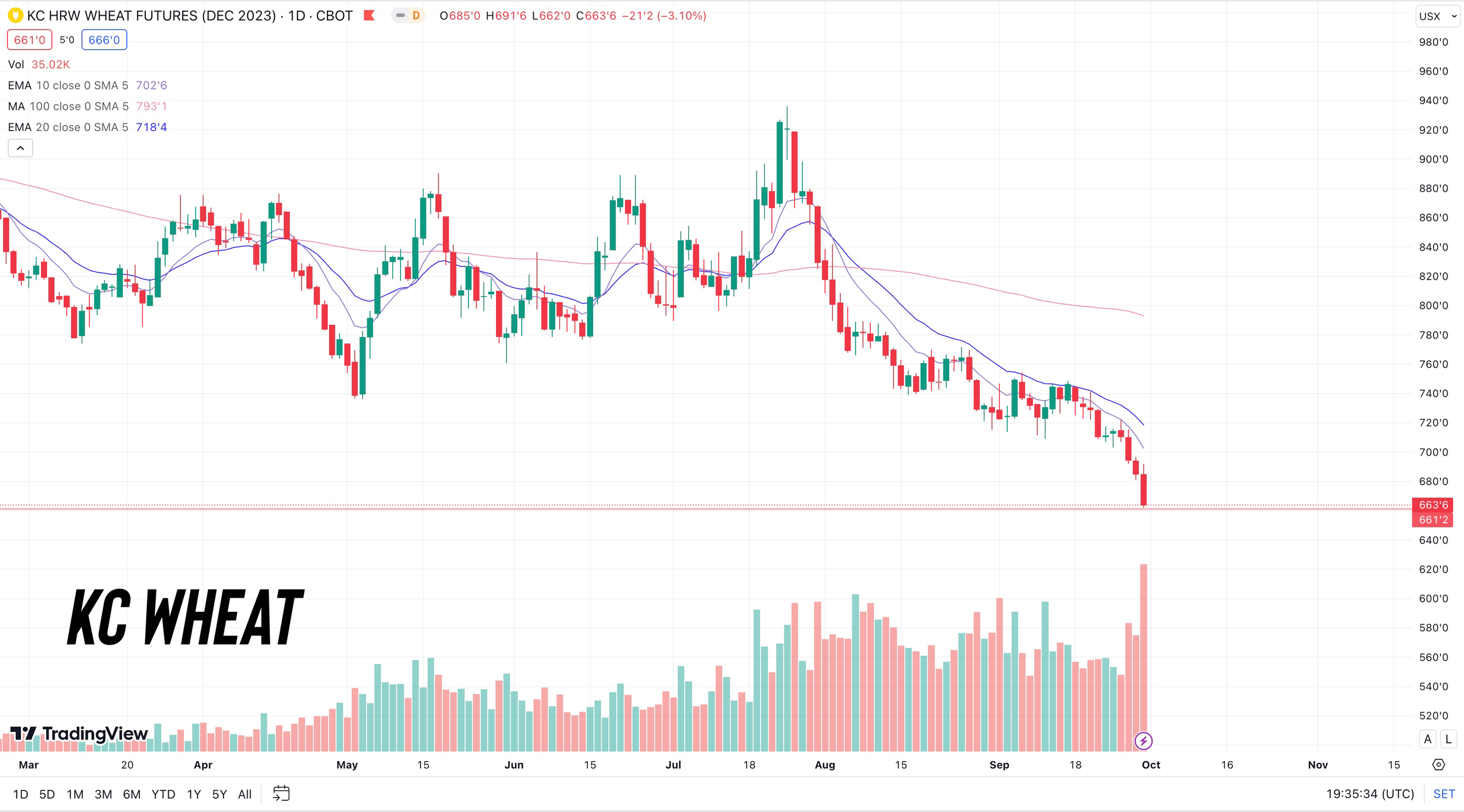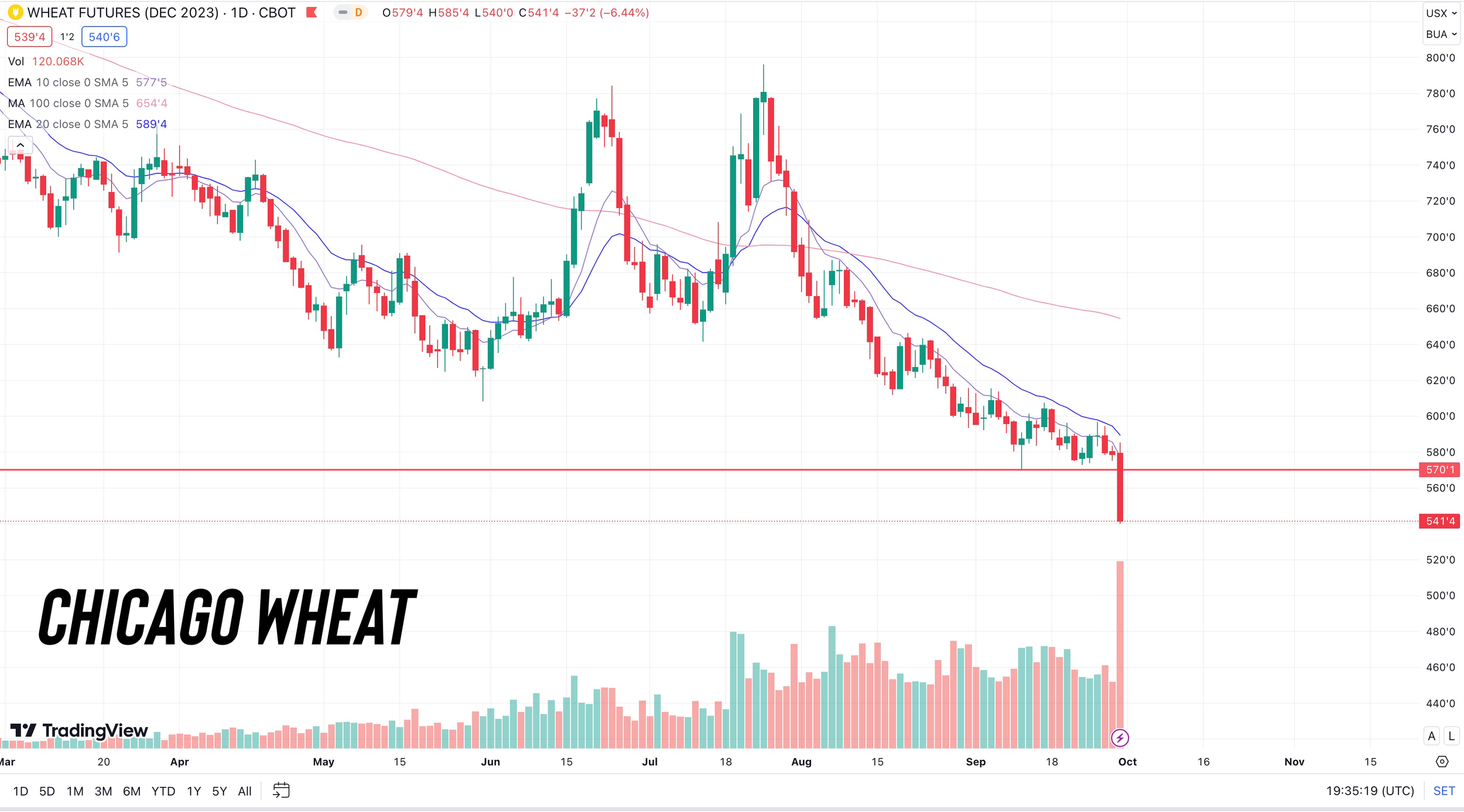 Wheat is collapsing from lack of demand and a bigger supply here at home.