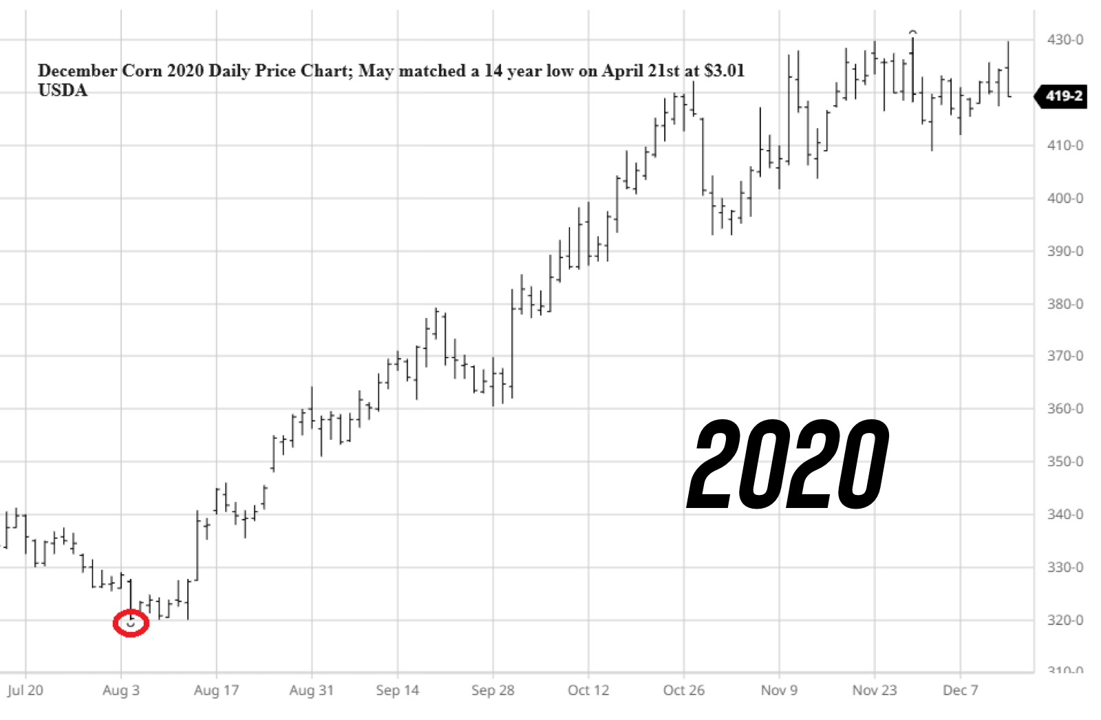 For anyone that has been forced to make sales in the past 30 days or will have to make new sales in the next 30-45 days. Find a way to participate when China decides to come in and buy our corn, which will be happening before the end of the year.