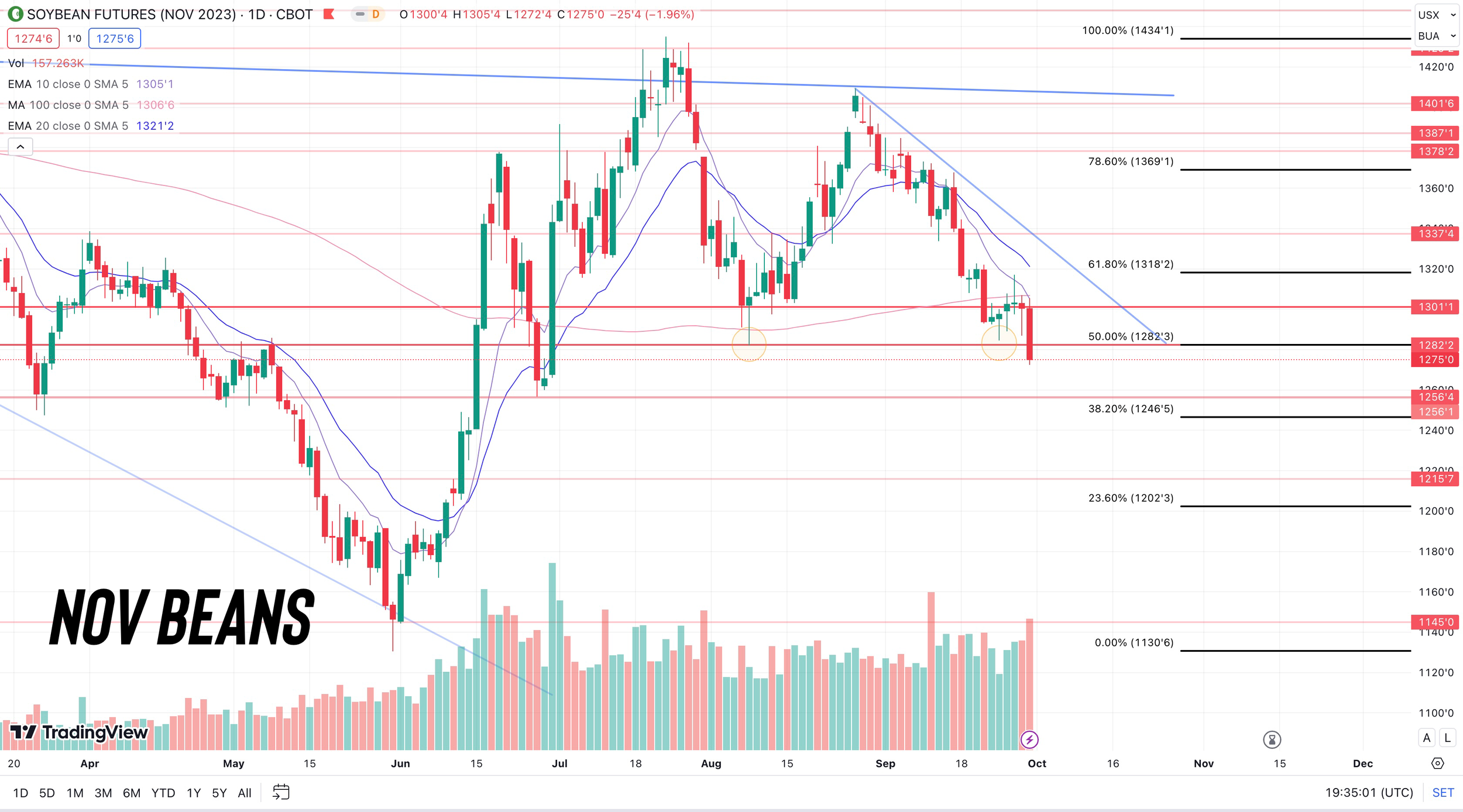 I do believe beans will be higher in the future, but how much lower will we go before putting in a bottom is the question. Will we continue that historic trend of putting in our lows the first week of October? We'll have to see.