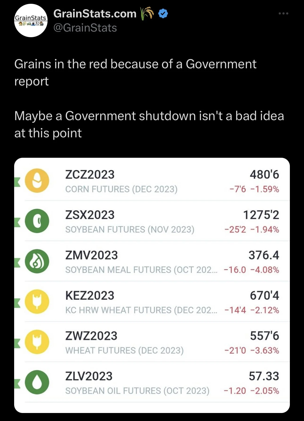 The government not shutting down is a good thing for grain prices.