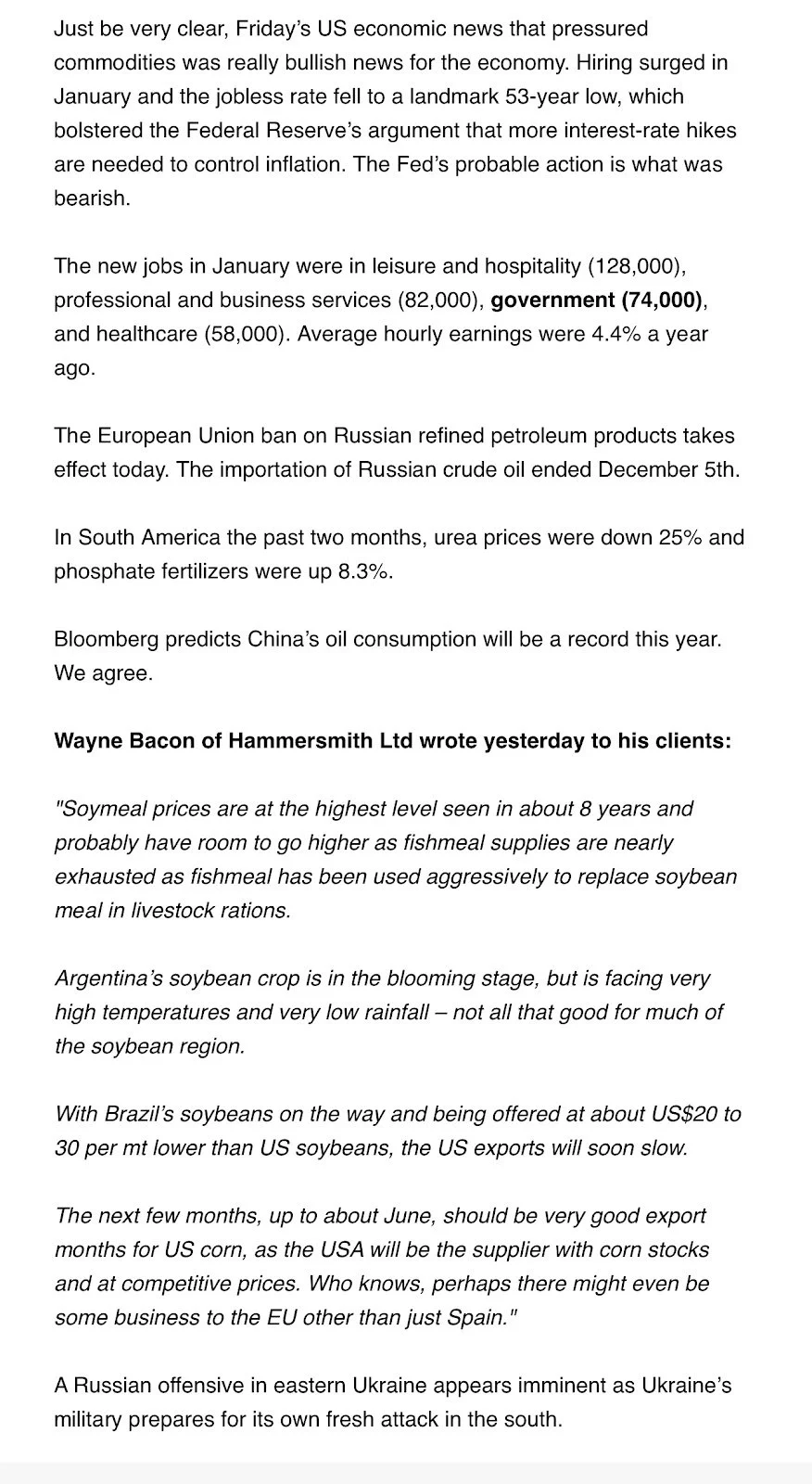Not so fearless closing thoughts remain the same, I am bullish. Very bullish and I think we will see new all time highs in 2023 for most of the grains as well as cattle. I want to remain patient until my scorecard of trends tells me it is time to sell. My scorecard might be very complicated, but I am comfortable with that. Your scorecard should be something that you are comfortable with. It should include information that I provide, but it should also include information that is only for your operation as it will be key so your triggers for making sales align with your operational goals as well as risk reward profile.