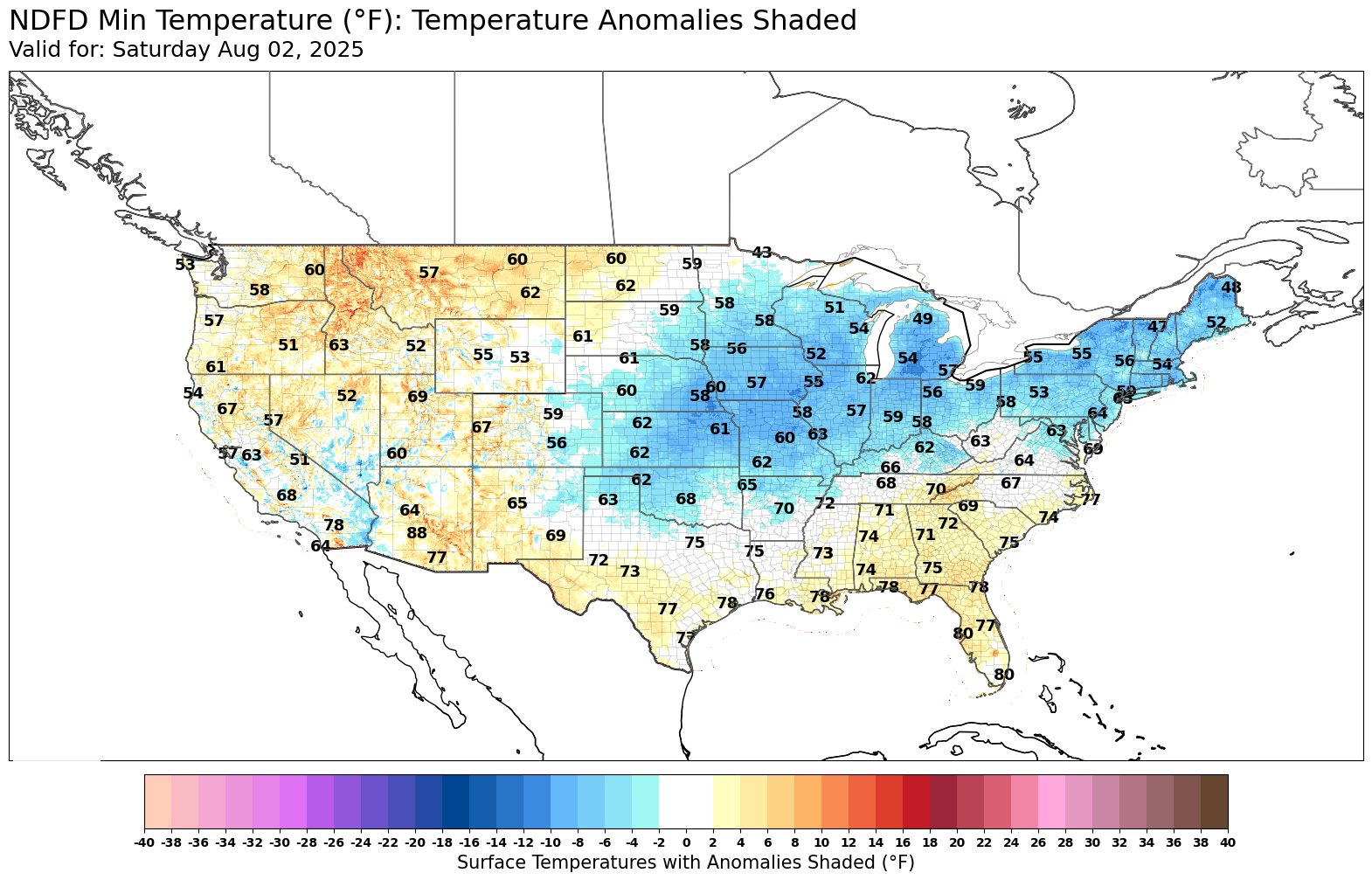 Here is today's minimum temps vs this Saturday's minimum temps.