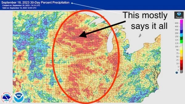 We also got yet another wild 2023 headline rumor. The rumor is that the government may be shutting down at midnight on September 30th, the end of their fiscal year. If that happens we may not get the USDA production and supply & demand report on October 12th. The markets usually don’t like uncertainty, so if this happens it could lead to uncertainty and a little more selling rather than buying. Just something to look out for.