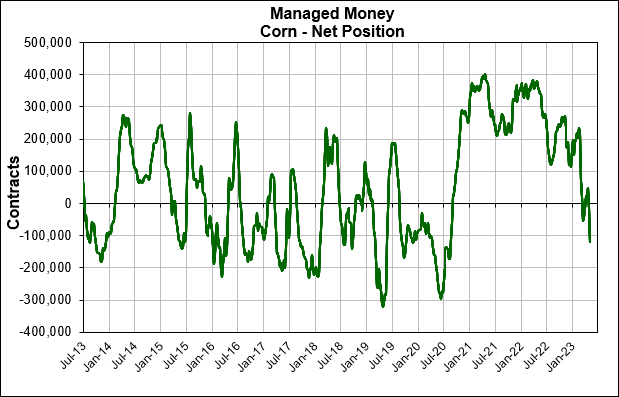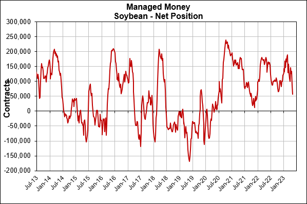 While the funds hold heavy short positions in both corn and wheat, Friday's data showed the funds were still long around 60k contracts of beans and meal.