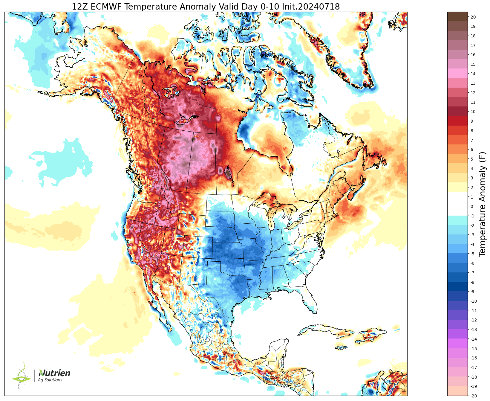 However, Minneapolis wheat rallied today. It looks like some of the heat in the Canada area is raising some eyebrows. Some areas in Canada broke all-time heat records today.