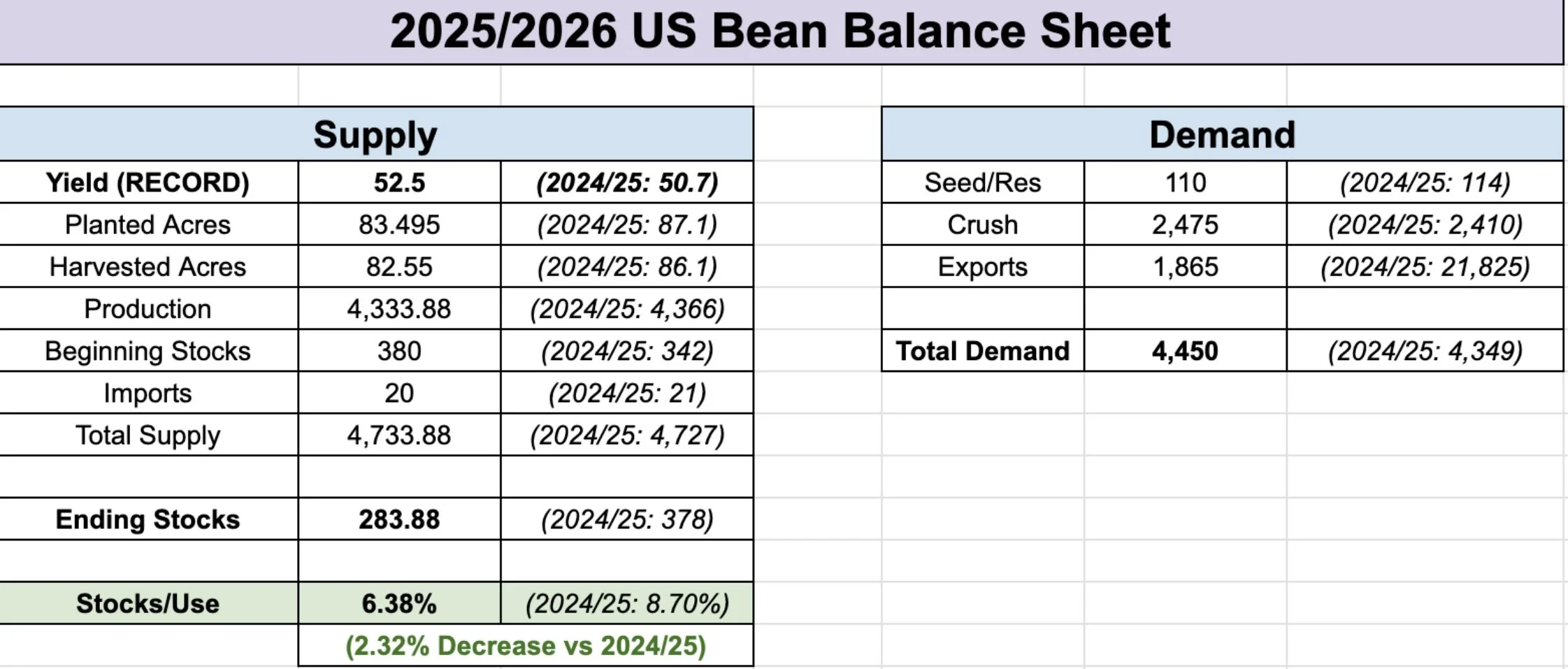 With a record yield of 52.5 bpa.. the new crop situation is already projected to be far tighter than last year.