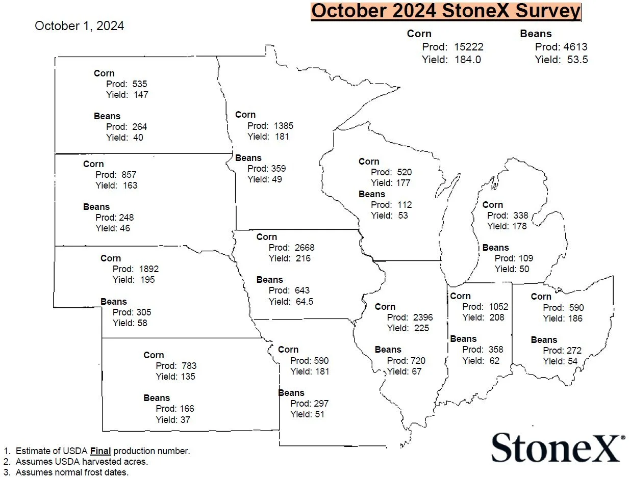 StoneX released their newest estimates and they actually have the crop bigger than the USDA does. As they raised their estimates from last month. This is a customer based survey.