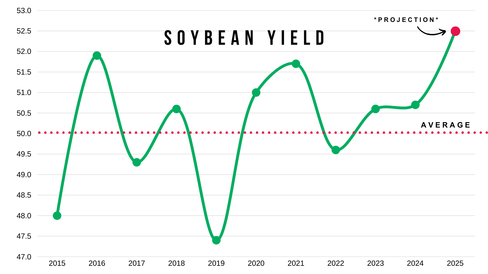 Average yield for the past 10 years is 50 bpa.