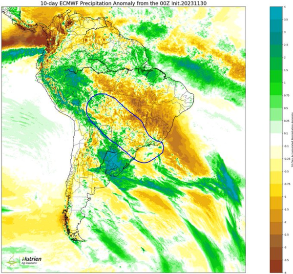 "This could be the year we break records. If the next set of rains from this Sunday to Tuesday of next week and the week of December 11th to 15th are a bust, it's a game changer as Brazil soybean production falls below sub 150 MMT."