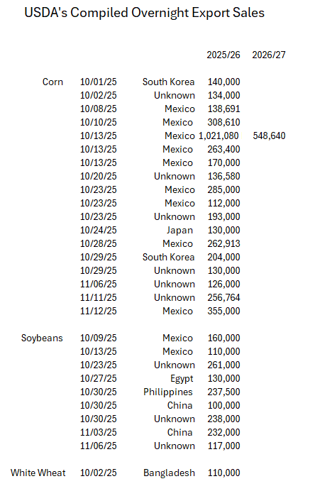 For soybeans, the market was more disappointed by the lack of China purchases in the export sales data which we will touch on later in today's update.