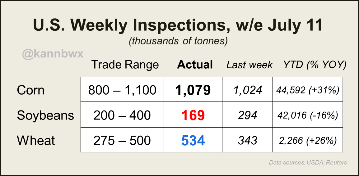 Export inspections yesterday were pretty strong corn especially for this time of year. Up +5.4% from last week and a massive +157% better than last year.