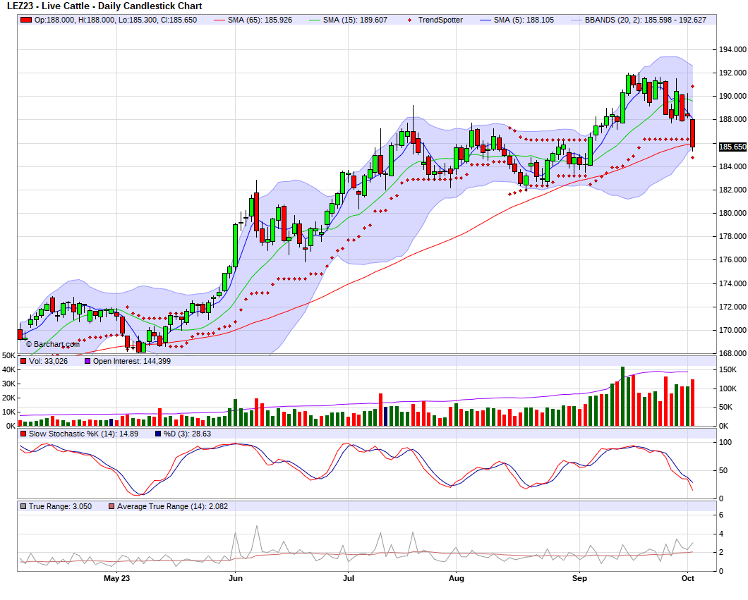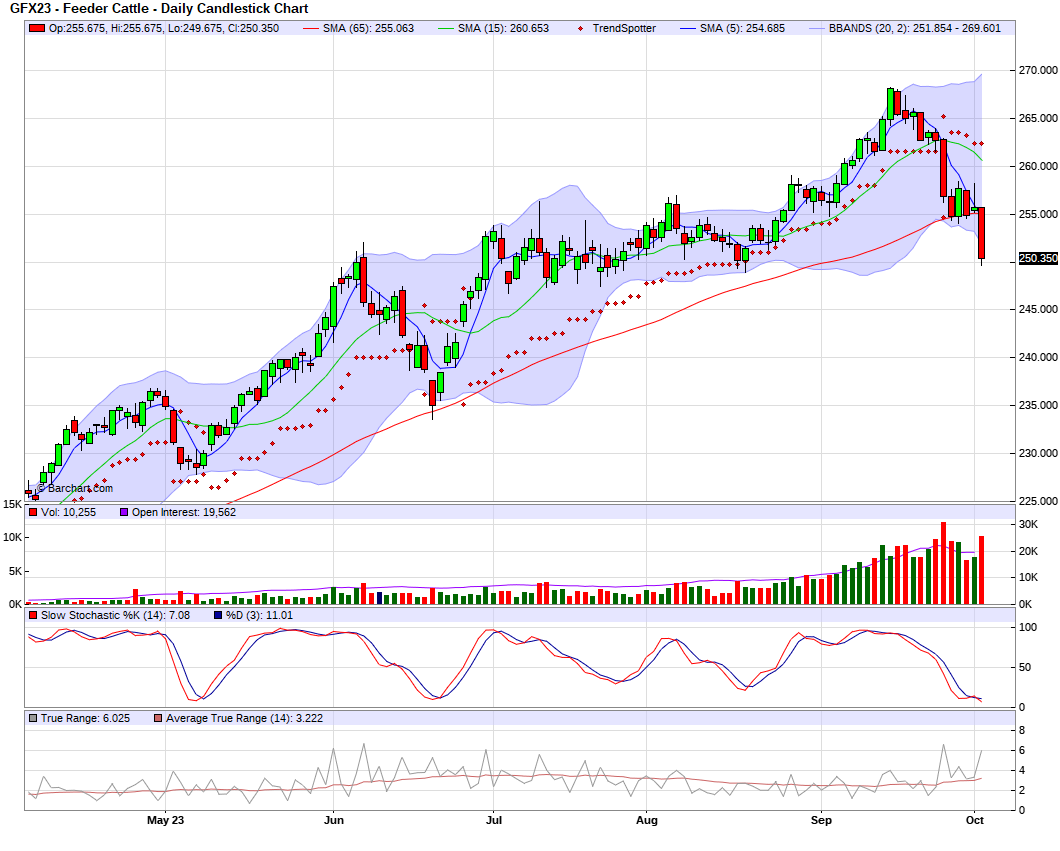 After trading in mainly a sideways range for the past 2 weeks, cattle futures saw some heavy pressure today as they took a nose dive.