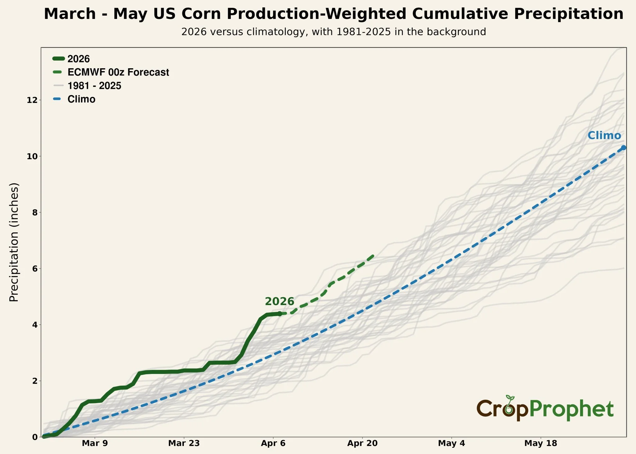 Here is a chart from Crop Prophet that shows corn precipitation for March to May.