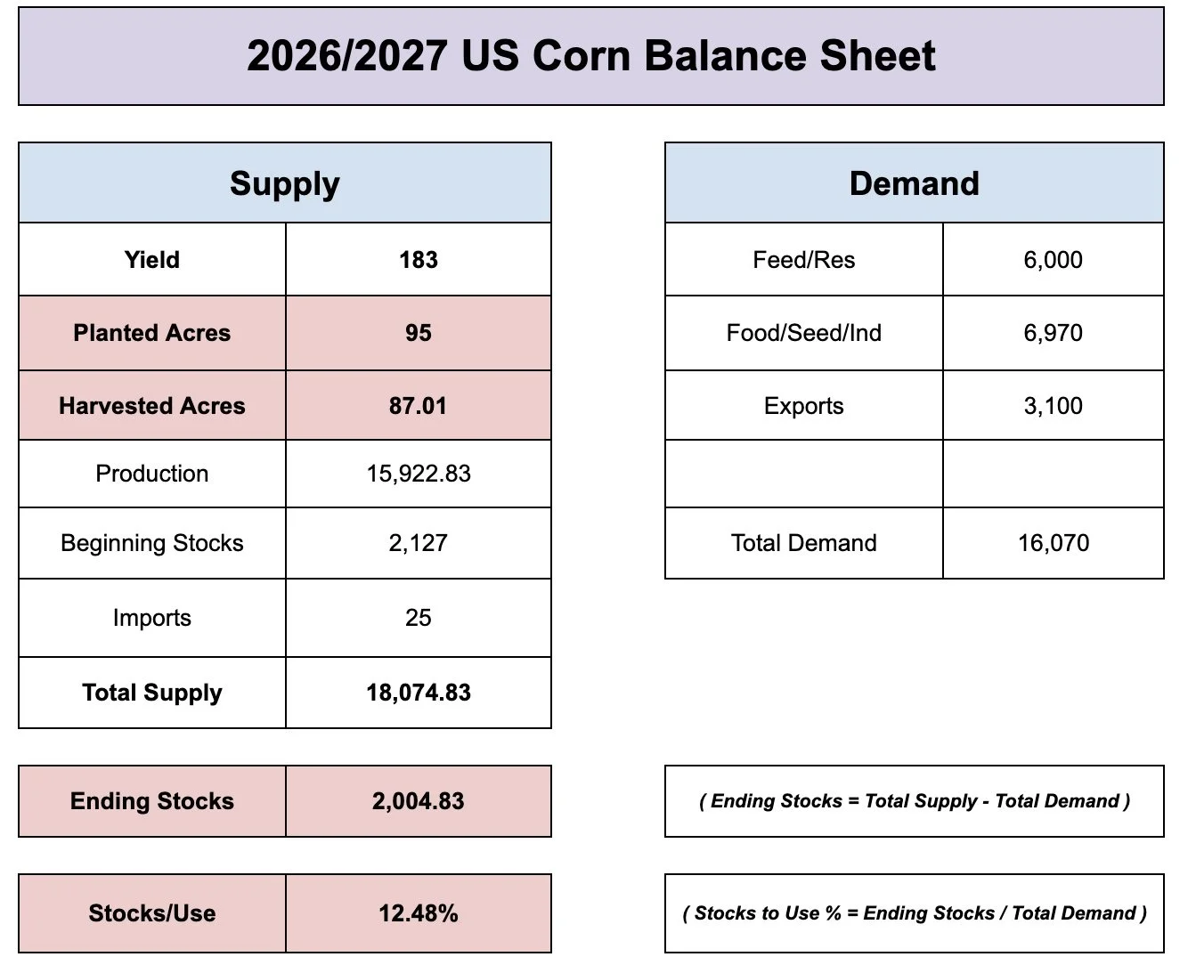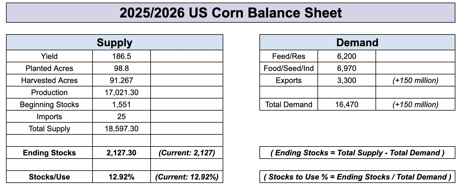 They left the old crop corn balance sheet completely unchanged. Which was expected.