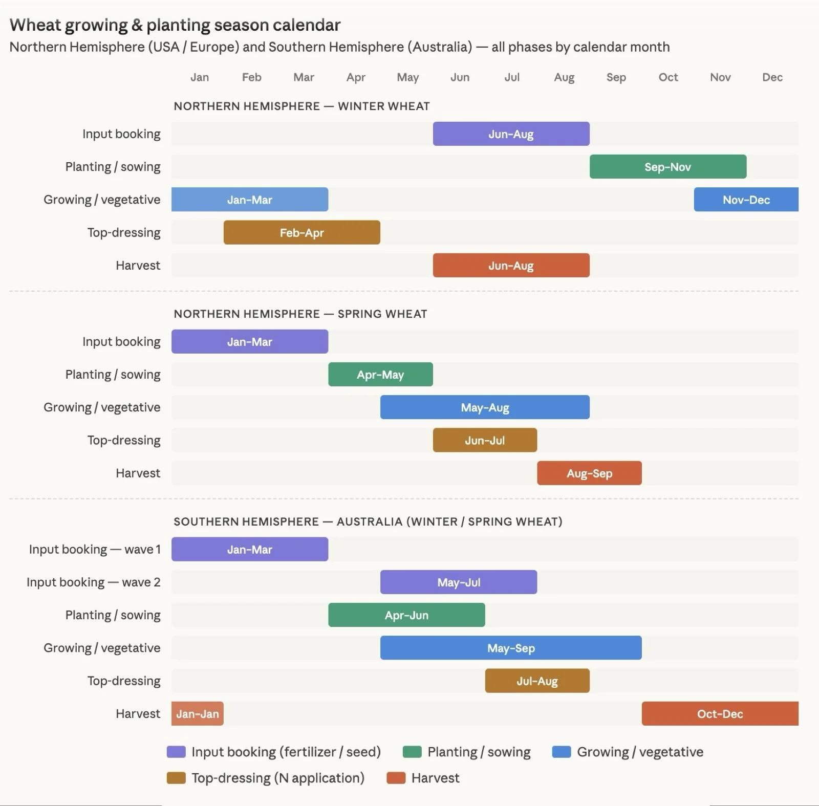 Here is a growing season chart for the northern and southern hemispheres. This chart also shows that rough input booking timeframe.