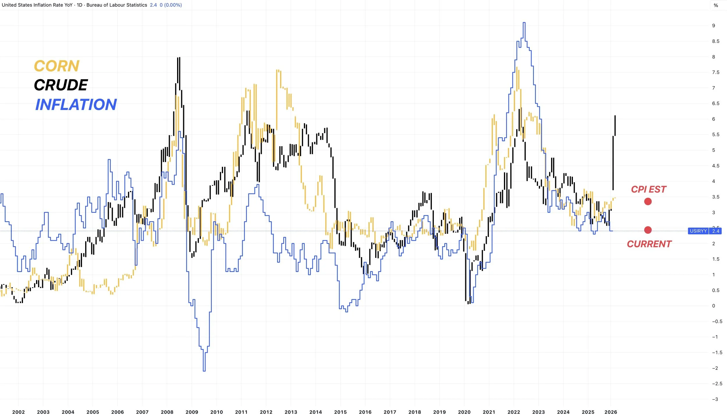 Crude vs corn vs inflation.