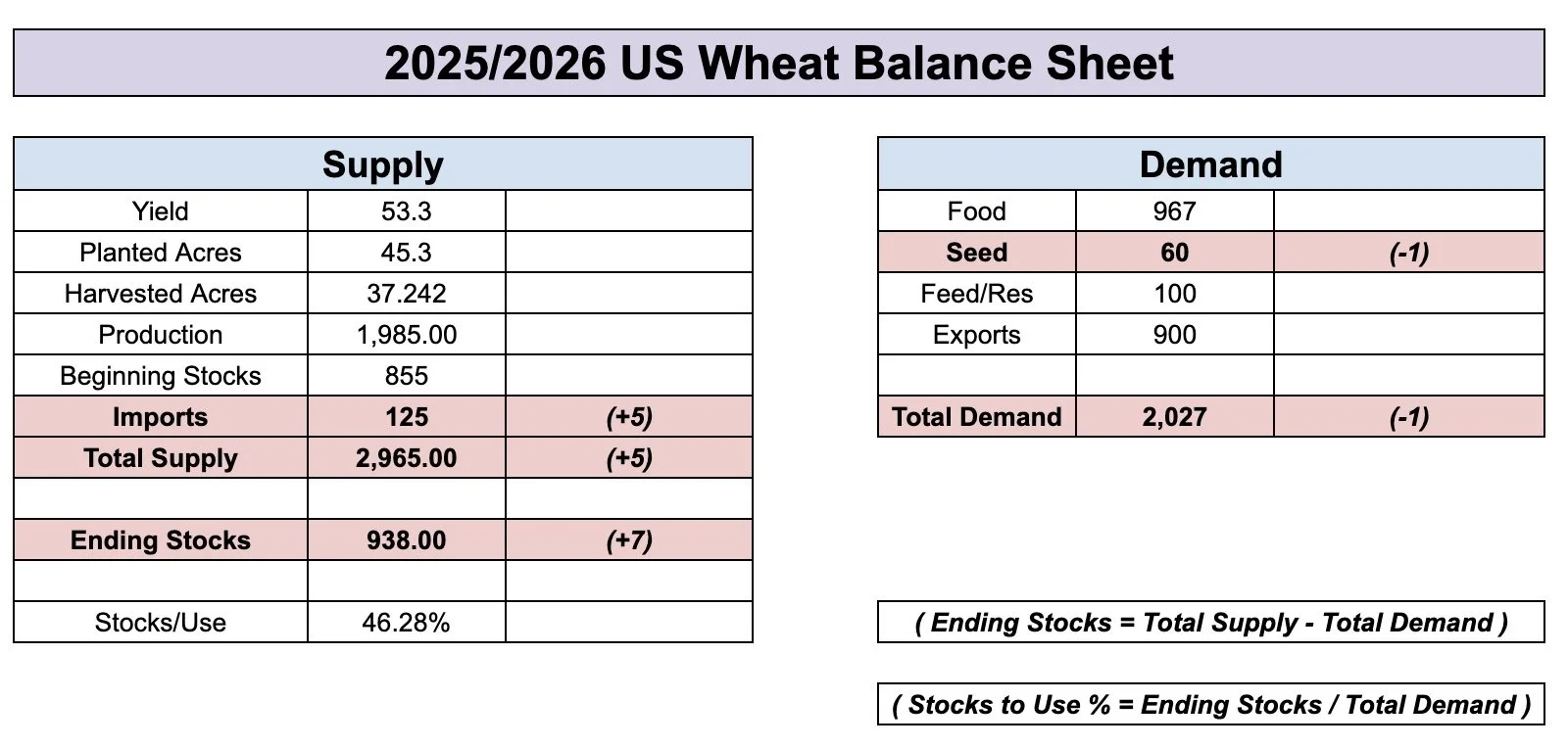 For the wheat US balance sheet, the trade was expecting carryout to fall slightly, but instead it actually jumped slightly.