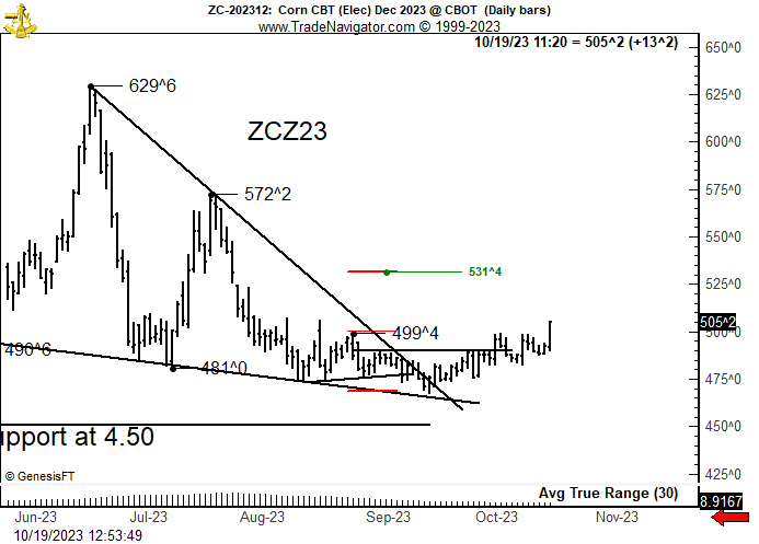 Corn rejects right off our 100-day moving average which was my first target of $5.09.