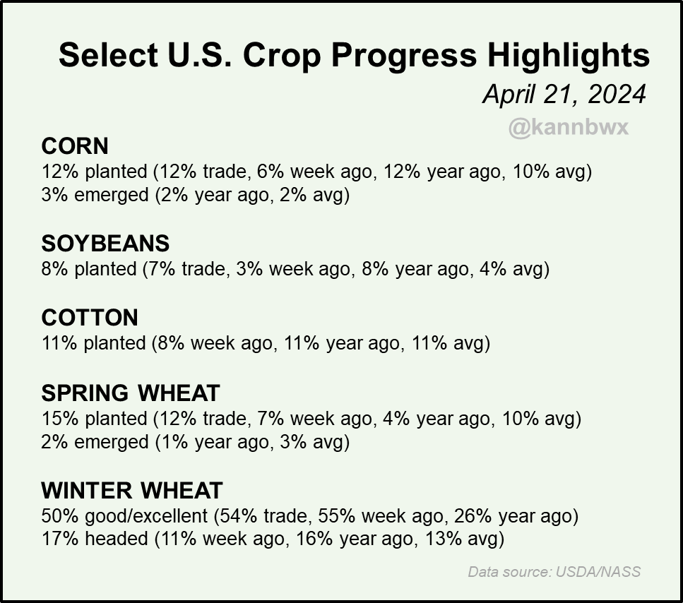 Planting is going well so far. Nothing too crazy, as planting is slightly ahead of the average pace across the board.