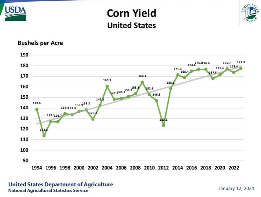 Now say yield drops to even just 173 which is possible, carryout would drop to around 1.6 billion bushels.