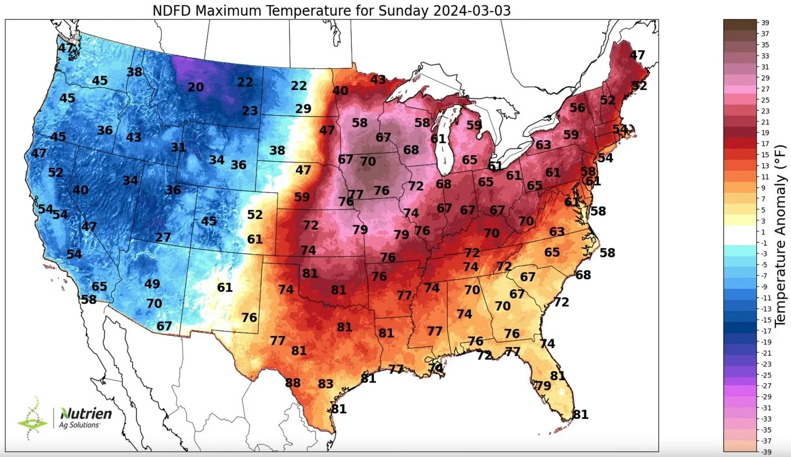 By the end of March and into early April, we will probably have the talk of higher acres and planting going well, which will probably put this market under pressure until we get the drought talk. Which I think we will. Keep in mind, last year even though we had a great crop, we got that weather scare. We almost always do. If the current forecasts hold true and we don’t get that timely rain like we did last year, things could crazy this summer. So early planting is a bit of a double-edged sword. The early planting will likely push prices lower early, but opens the door for greater risk of drought.