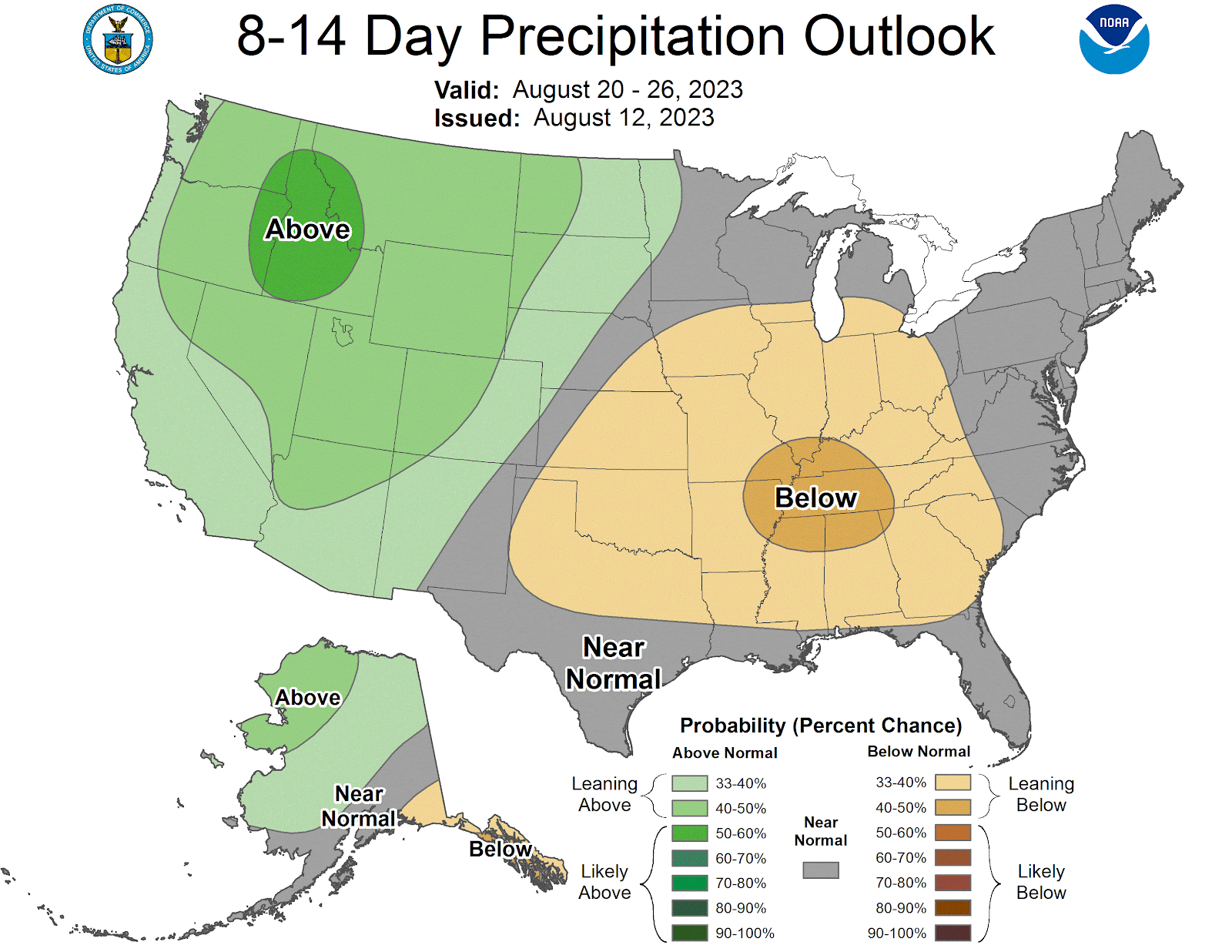 For soybeans the key level to watch will be last week’s lows. If we can hold that level don’t be surprised if we rally going into harvest as the market has priced in a lot of bearish information, the market is still trading a yield higher then what the USDA printed on Friday. Weather forecasts are hot and dry. I don’t expect any more weather rallies to come from US weather unless we get an early freeze. Overall the weather market for the US crop is over or shortly will be as the time runs out on the weather clock.