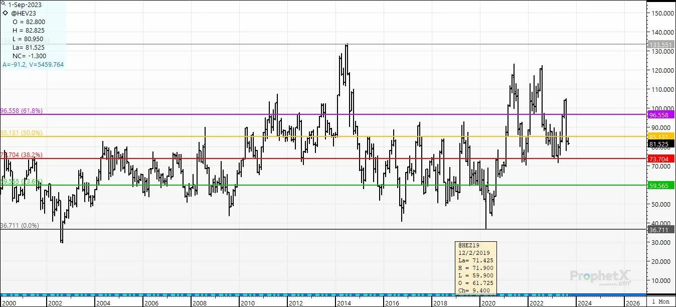 85 cent hogs is right in the middle of all the available prices over that big long time frame.