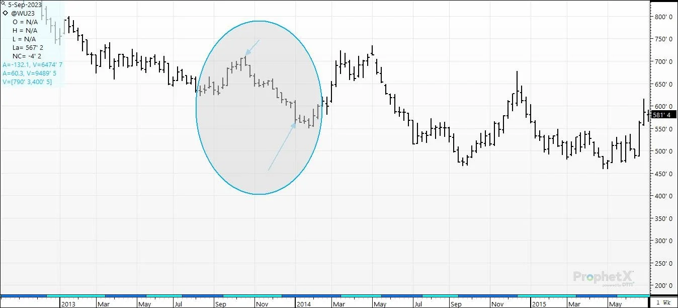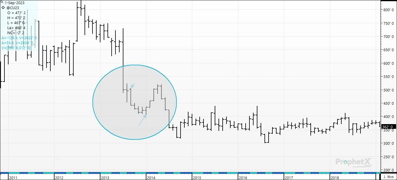 This spotlight shows what happened in the spot month corn in 2013 between September, and January 2014