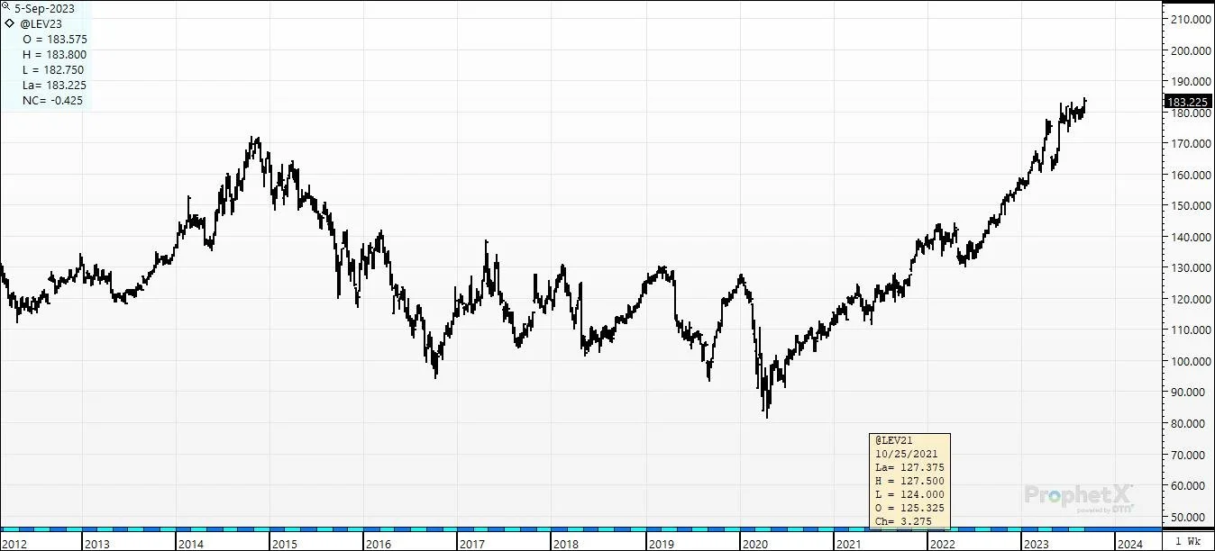 Friday's settlement was just 72 cents "under" our contract high at #14.35 we hit back in late July.