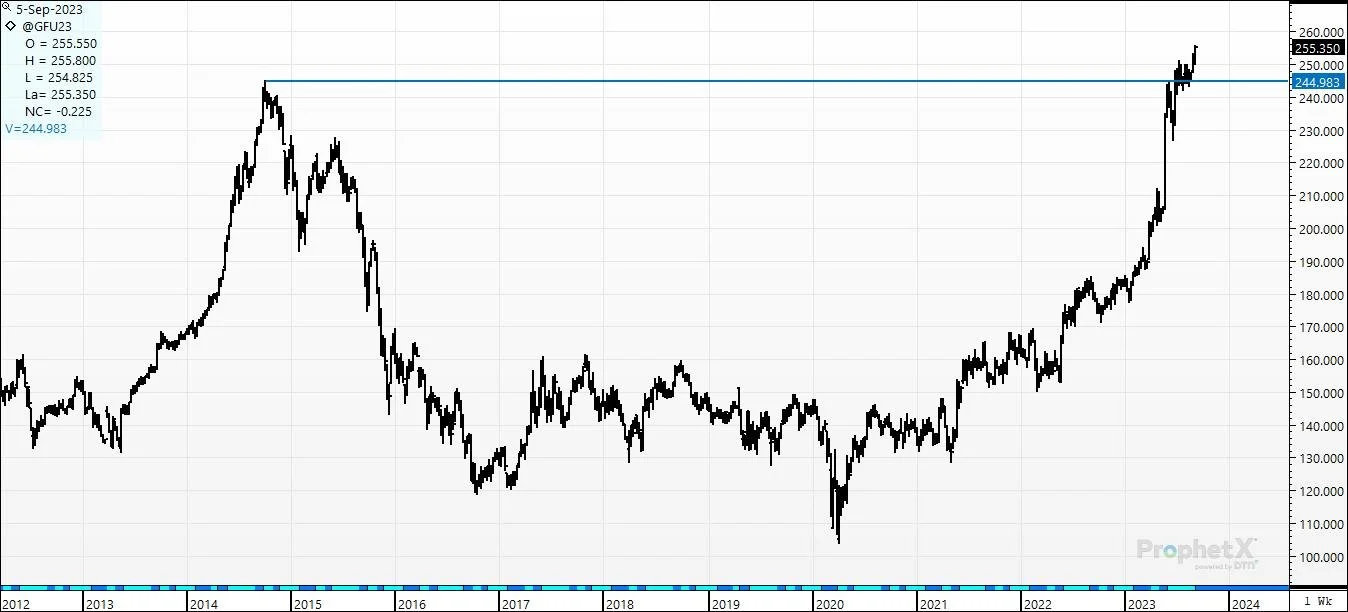 Throw in the fact that corn and wheat- are at 2 yr lows- and anyone feeding cattle- has a pretty good math problem on their hands right now.
