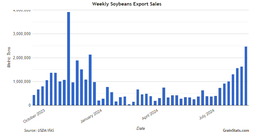 We saw yet another flash sale of soybeans to China. But a huge amount, just 132k MT. But we are starting to see sales pick up with rumors that China wants more.