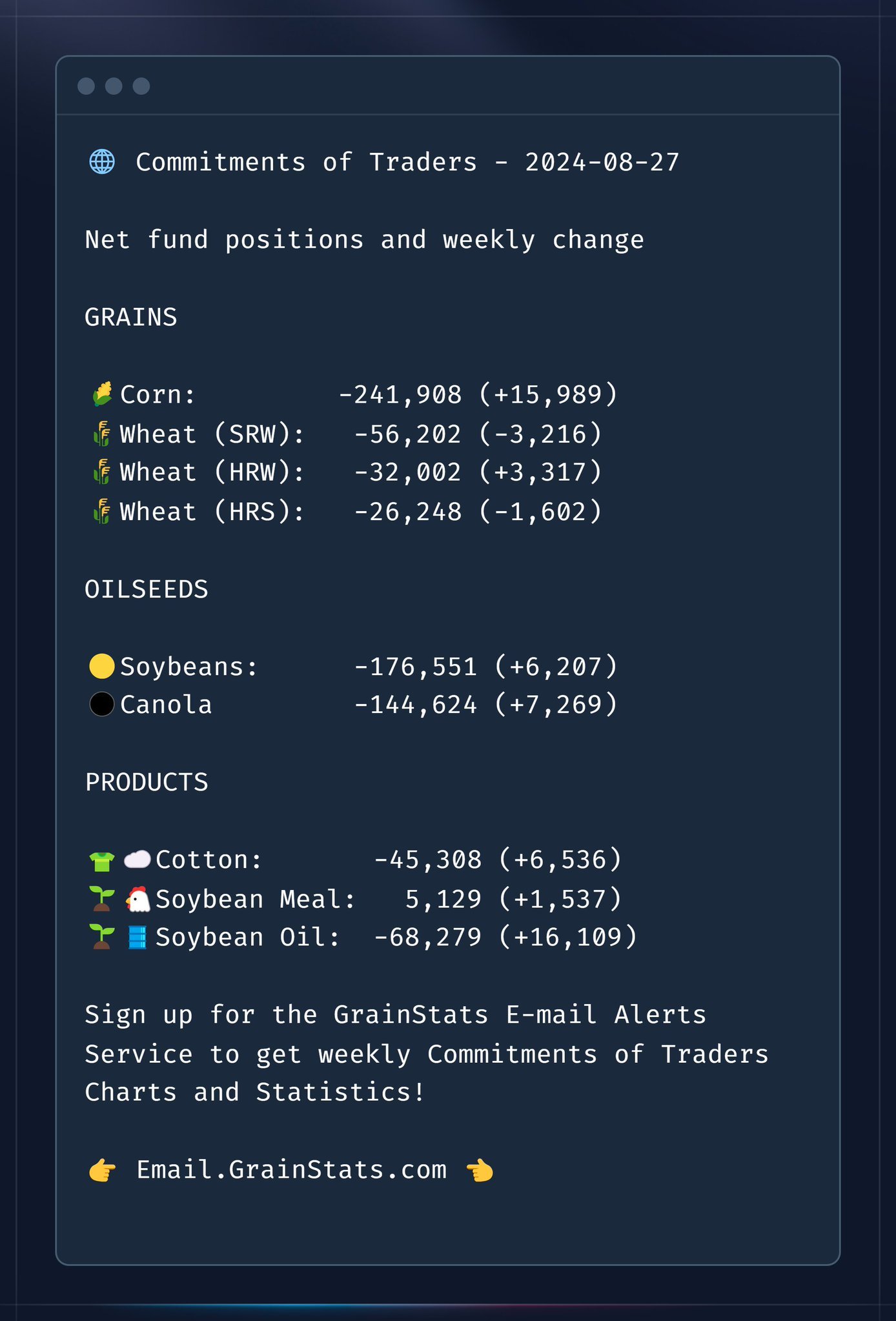 Weekly Fund Changes from GrainStats