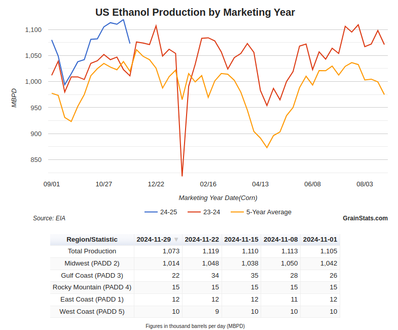 Not much fresh news. Ethanol production declined but is still way ahead of pace. Exports were surprisingly good.