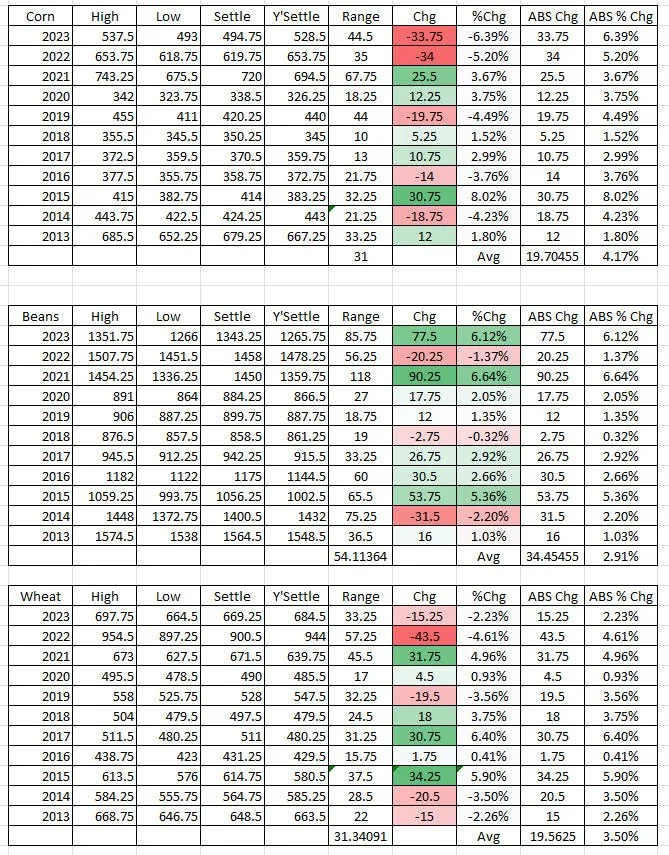 We have landed outside of the trade range 4 of past 5 years in beans. 3 of the past 5 years in corn.