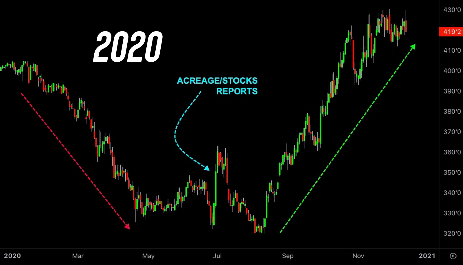 More importantly in 2010 the sky was falling we had made new lows the day of the USDA report, then all of the sudden the USDA dropped the stocks by 300 million bushels. Limit up here we came and we didn't look back for several years.