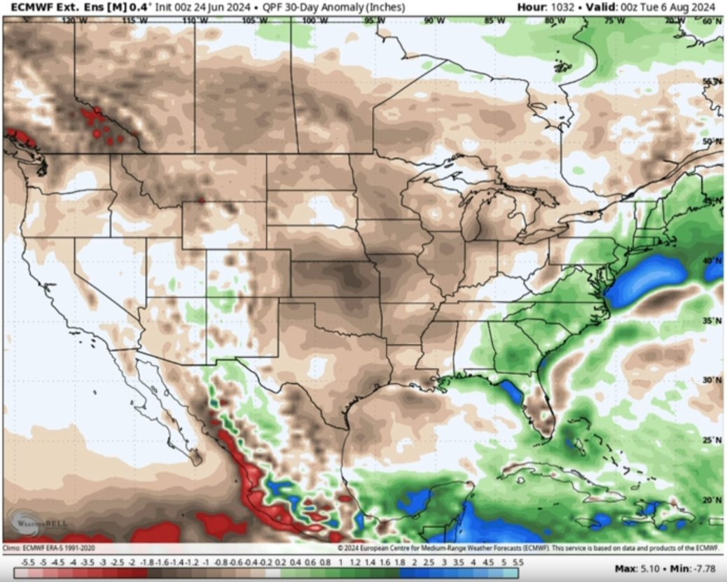 Despite the upcoming rains, the outlook for most of July is pretty dry and hot.