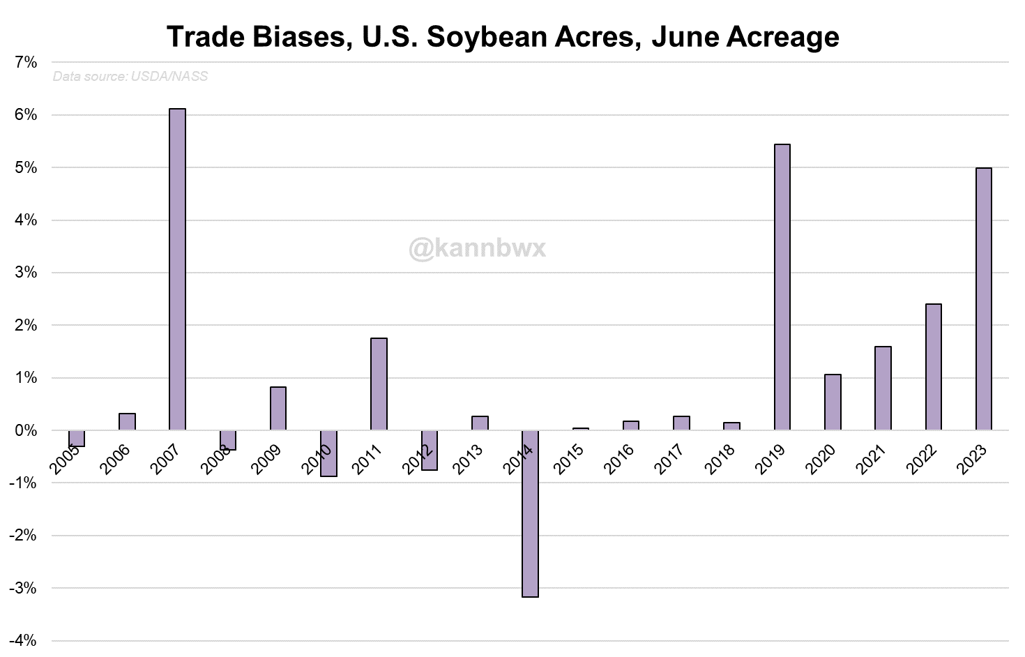 The estimates for soybeans have been way too high the past 5 years in a row.