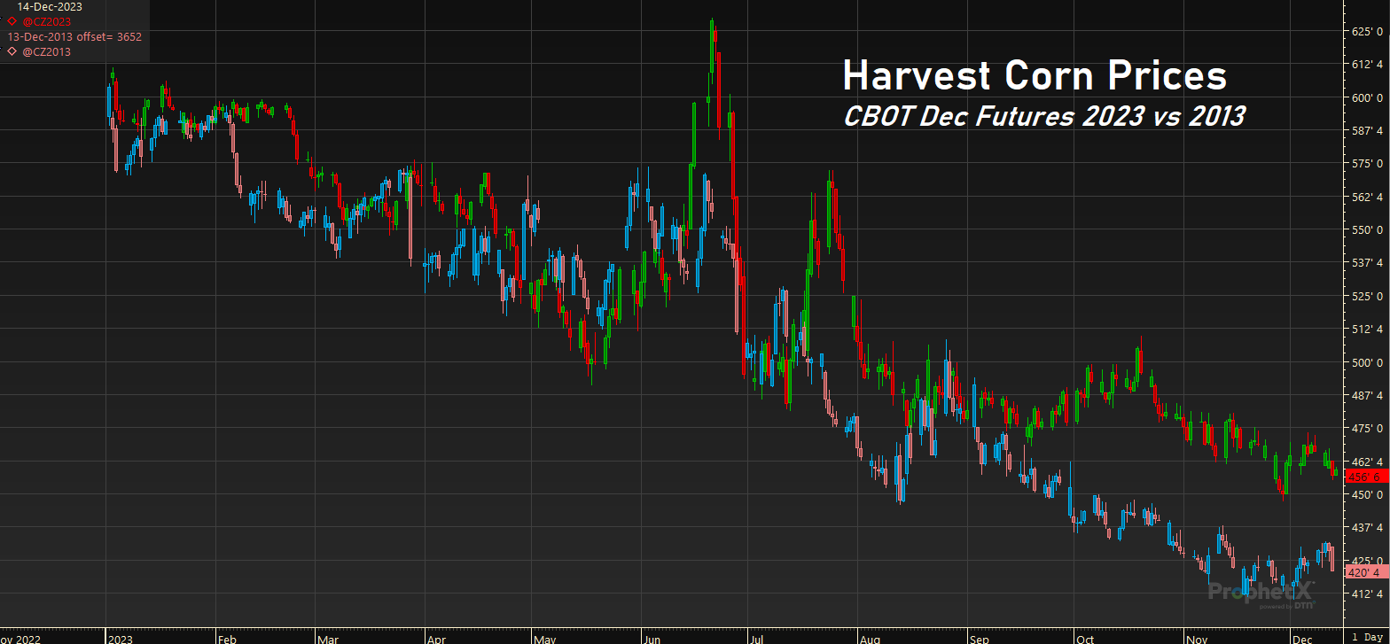 Corn posts new lows, as July corn finally broke below those Feb lows of $4.22 and Dec corn trades to it's lowest levels since 2021.