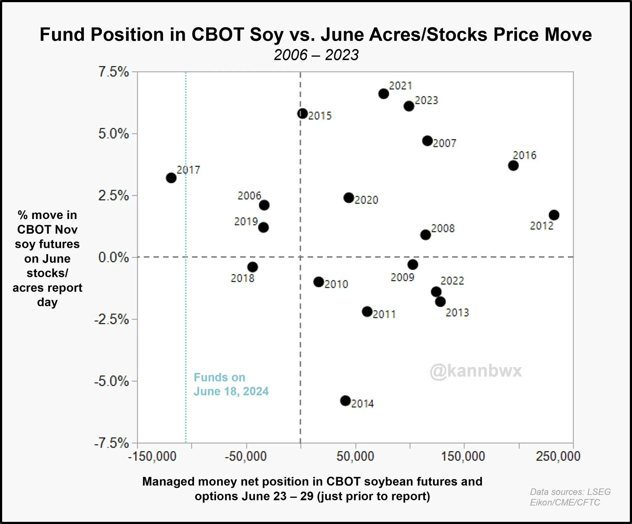 She pointed out that Dec corn has not fallen on report days when the funds were short. (Top left dots).