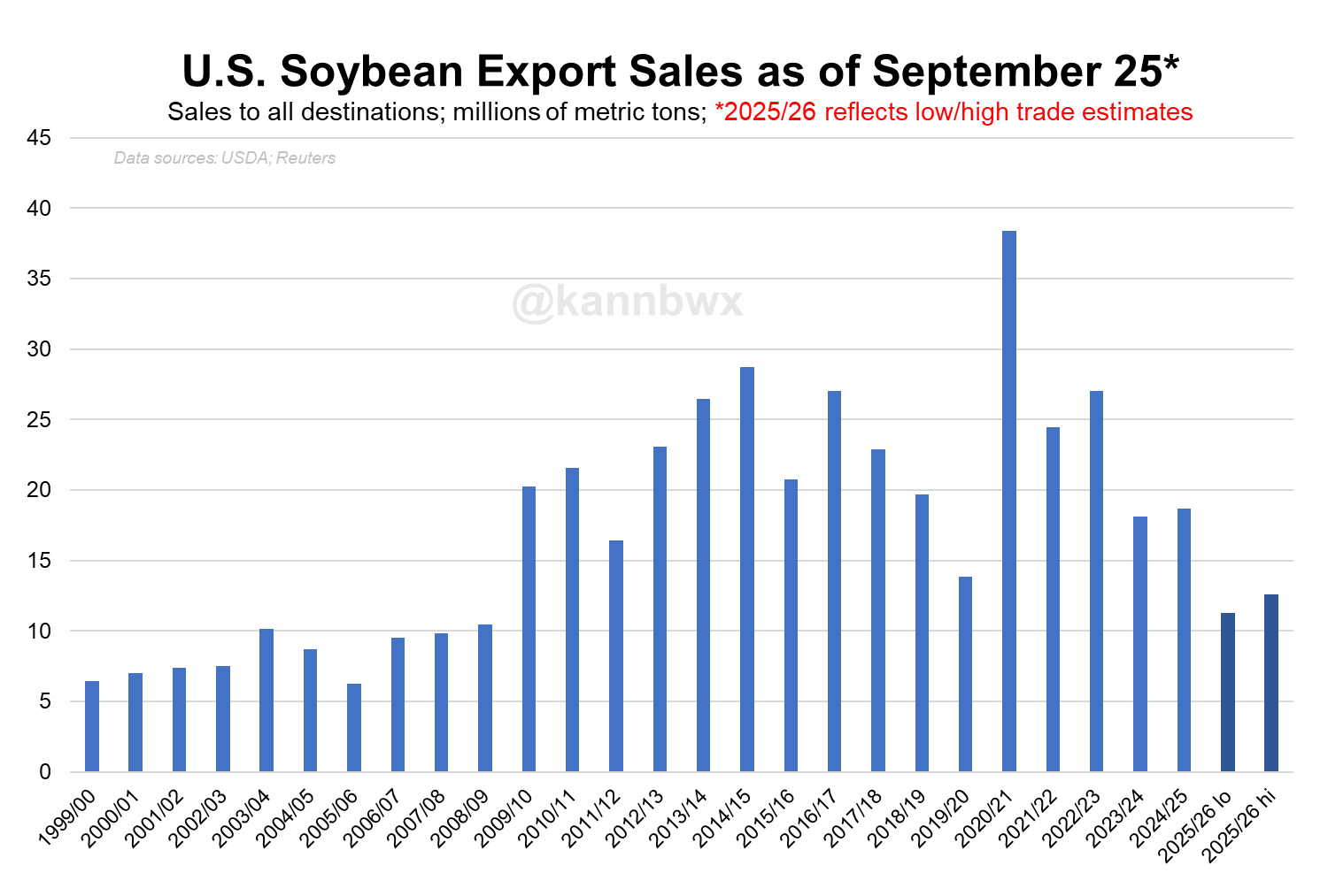 For soybeans, even if they would’ve came in on the high end we are still looking at one of the worst export books in decades. Even worse than the last trade war.