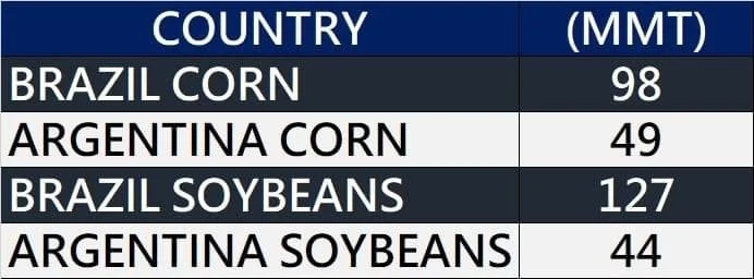 For comparison, the USDA is at 129 for Brazil corn and 161 for Brazil beans. For Argentina the USDA has 55 for corn, and 48 for beans.