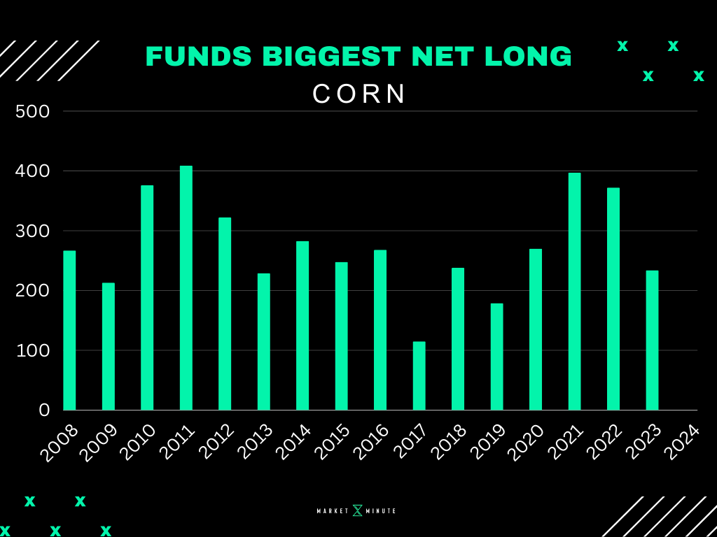 Lastly I wanted to show this chart. The funds have never not at one point got long during a year. Could it happen? Sure, but history is on our side. Once they cover, they are still short short a whopping -246k corn.