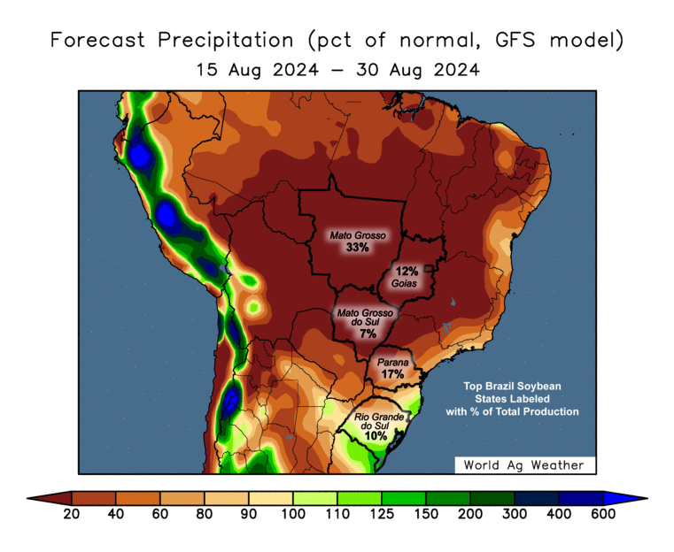 You have to keep in mind that Brazil is in dry season. Although it has been drier than usual, the rains usually don’t come until October to November.