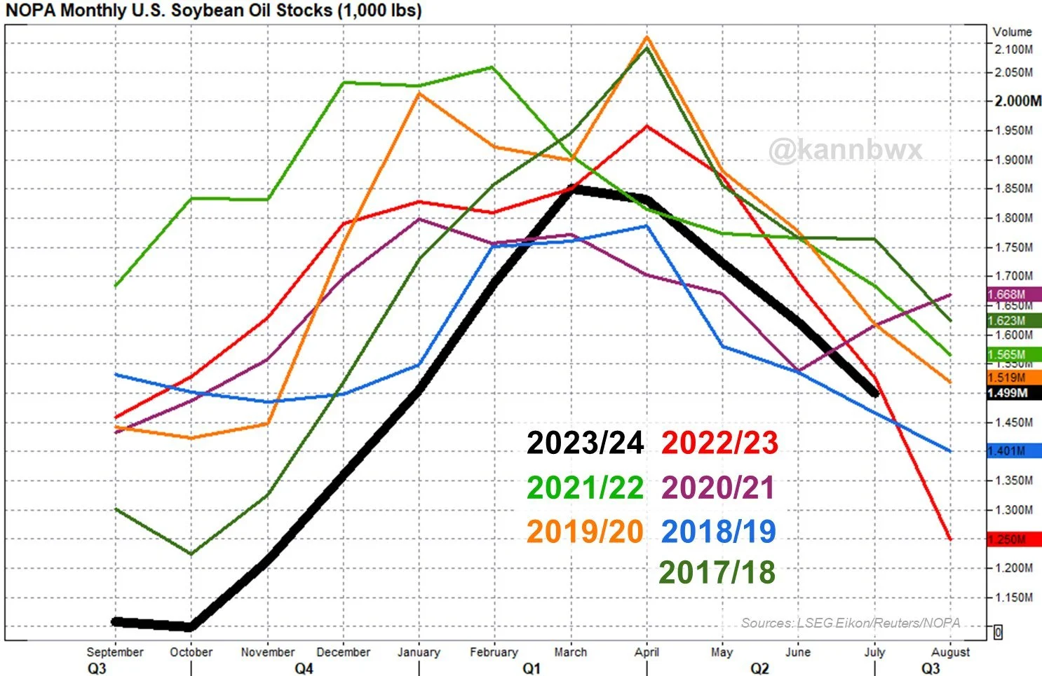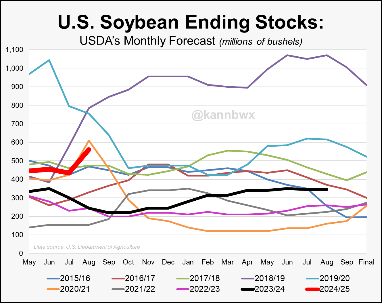 Our stocks to use ratio is 12.8%. The highest since the trade war. We have the 3rd biggest carry out on record for beans.