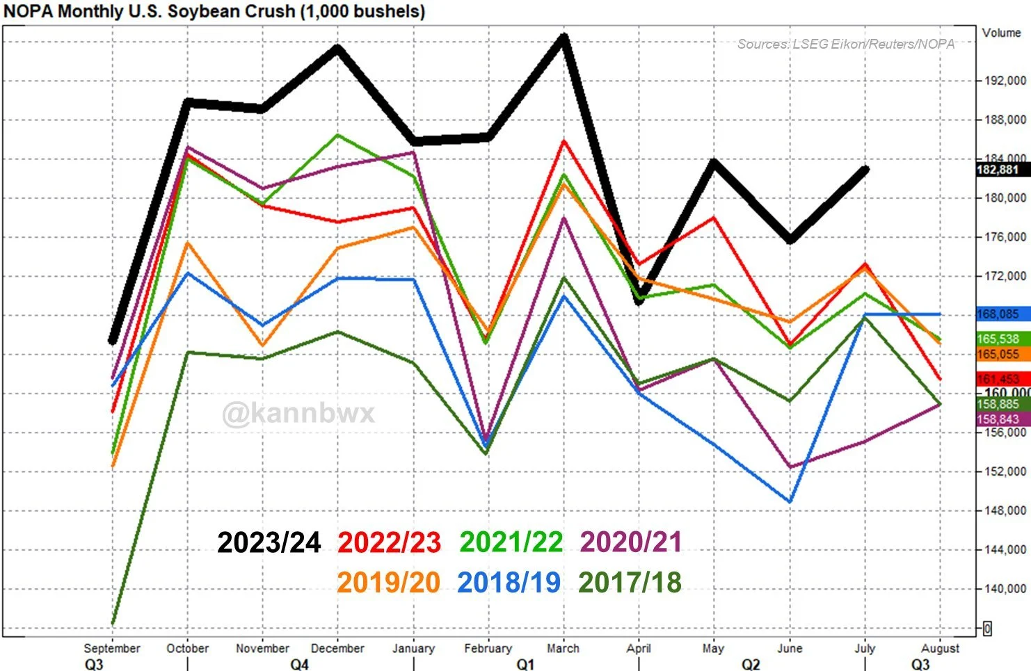 NOPA crush came in above the trade estimates at 182.88 vs 182.37 million bushel est.