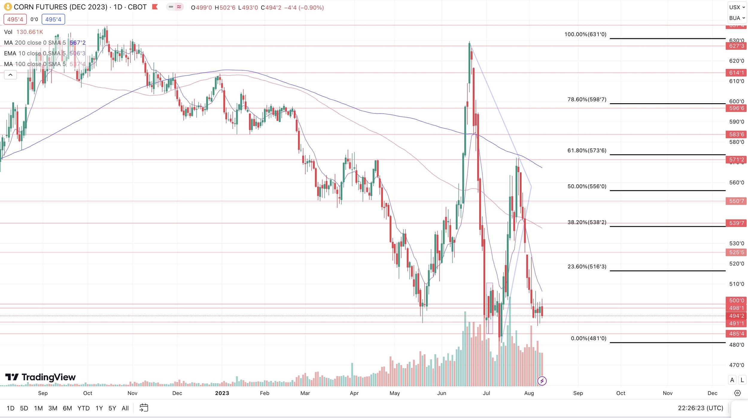 Overall, demand is the number one thing holding corn back. Going into the report I expect a cut to yield, just how big of one is the question. With us heavily oversold here, I think we might get a nice bullish surprise from the report, leading to a nice bounce. That's just my thoughts. The bigger question there however is can we hold the bounce or will the rally be sold like it has been? I don’t think a bounce into the $5.38 range would be all that unreasonable.