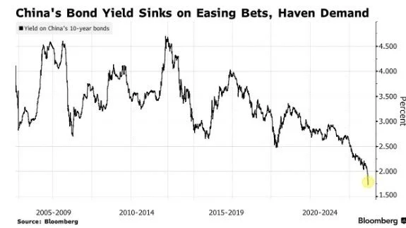 Below is China's 10 year government bonds. They yield only 1.75% (USA's yield 4.57% for comparison)