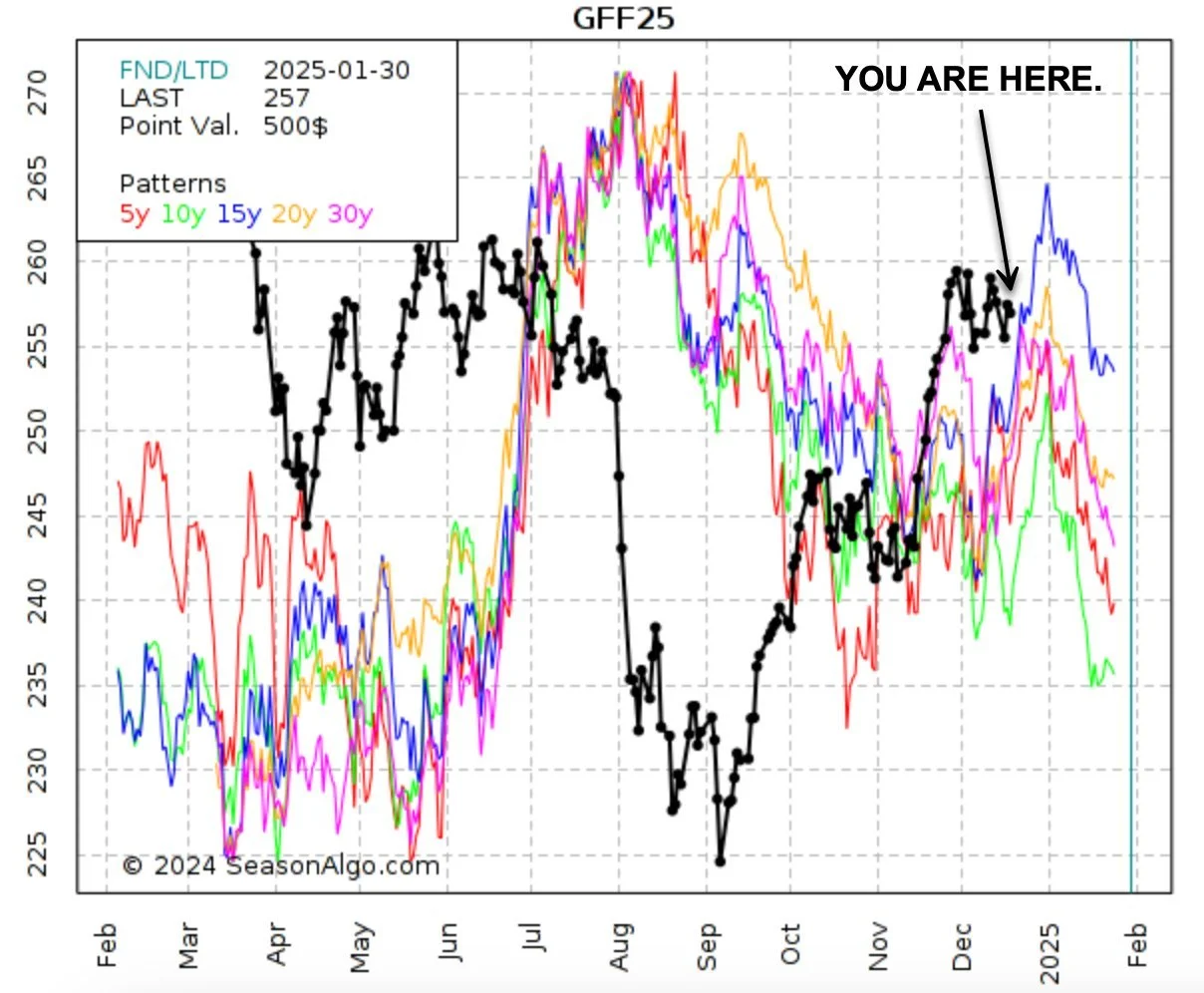 We do not cover cattle a whole lot, however I just wanted to show you the seasonals here for you cattle guys.