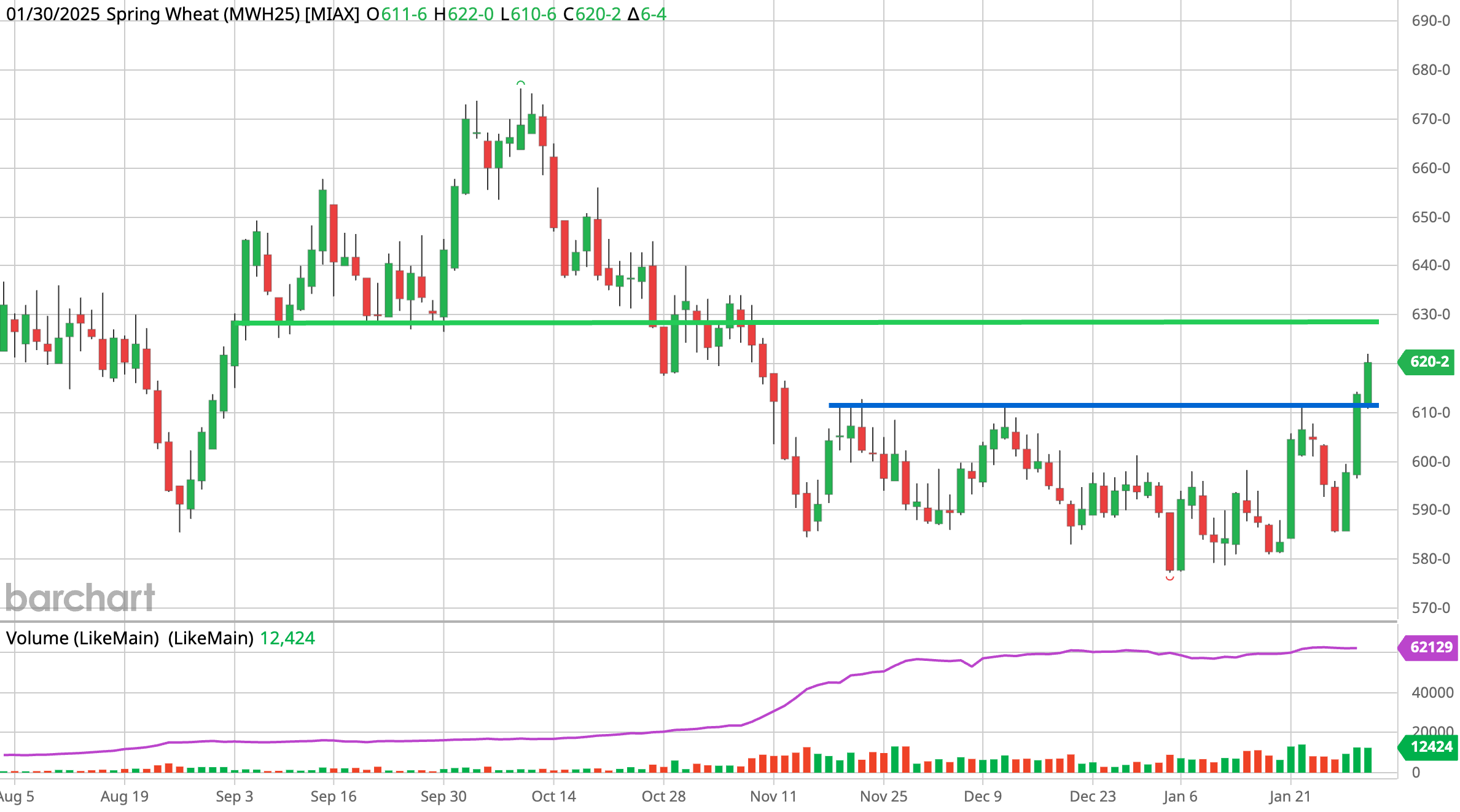 Corn and soybeans both lower today while wheat manages to trade higher for the 3rd day in a row and steal the show, posting new highs for 2025.